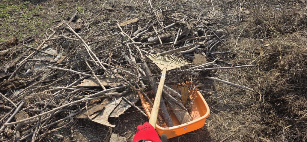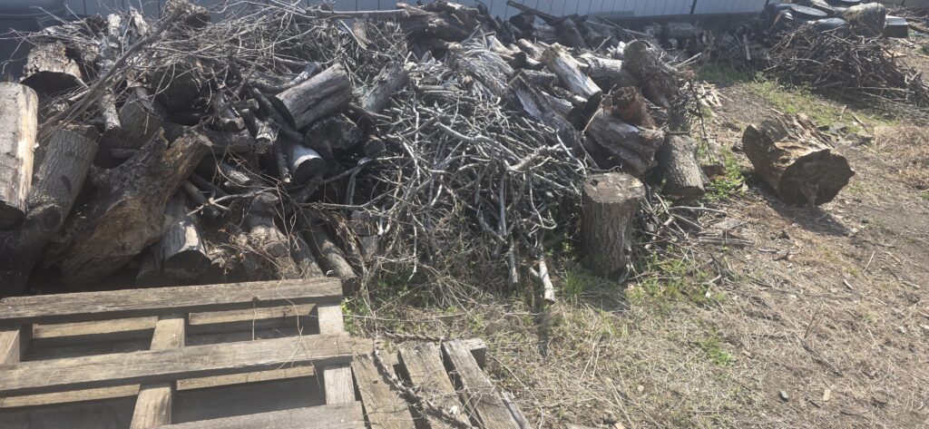ギリギリ 乗り切りました😍😍😍写真では、長年お庭に積み上がっていた丸太の山、太くて重たい幹、細枝の束、地面に絡みつく木くず、かき集めが大変な雑草類までしっかり確認できます😳