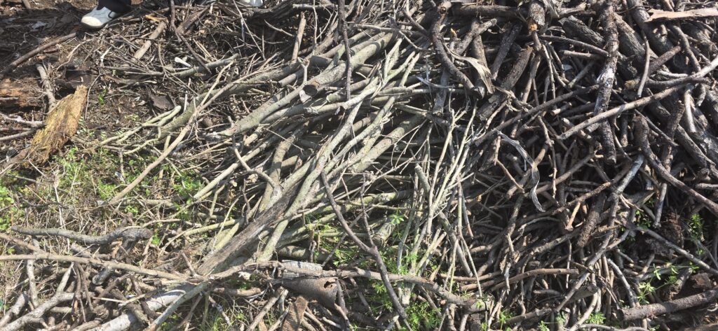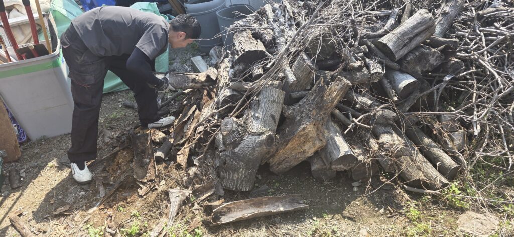 大木の幹、丸太、枝、雑草、生木がどんどん積み上がり、処分しようにも自力では到底追いつかず、そのまま長く置いたままになっていたとのことでした💦