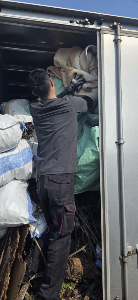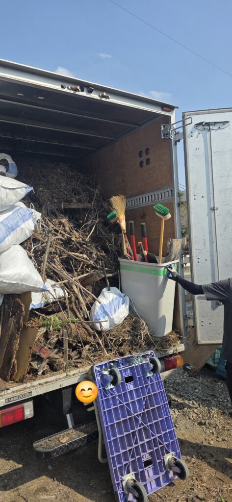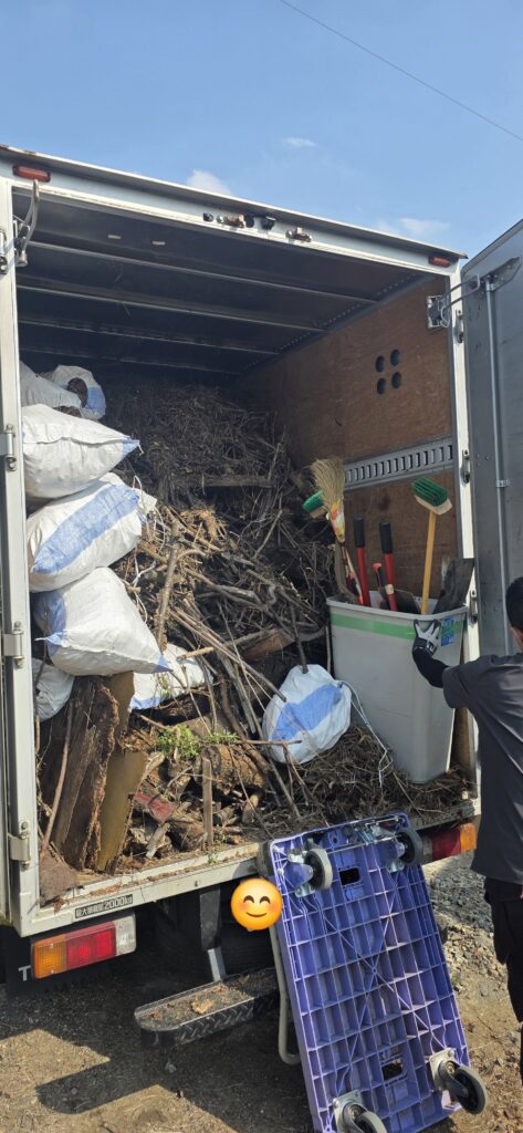 分別してフレコンパック、土嚢袋などの種類別に袋詰めして詰め込んでいき、ようやくラストスパート🌟