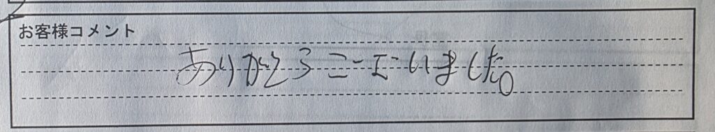 お客様、温かいお言葉を本当にありがとうございました😊🌷とても優しく明るく気を使っていただけるお客様で本当に楽しく作業させていただきました!お客様 この度は本当にありがとうございました🌟