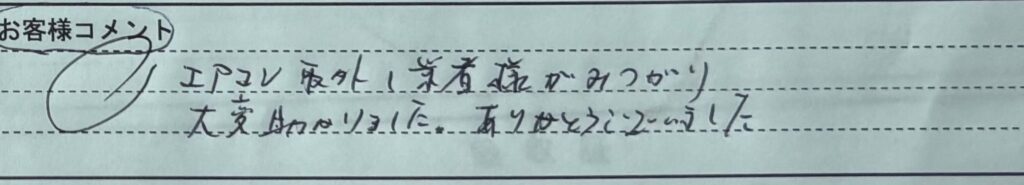 「エアコン取り外し業者様が見つかり 大変助かりました。ありがとうございました。」