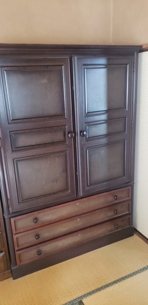 お部屋に置かれた大きな婚礼ダンス。立派ですが、場所を取ってしまうのがお悩みでした。長年置かれていたため、壁には湿気によるシミも…。