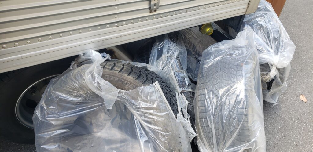 キッチンにも、処分に困っていた洗濯機やテレビがありました。玄関先には、重くて運べない車のタイヤが…。
