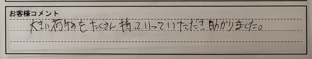 「大きい荷物をたくさん持って行っていただき助かりました。」