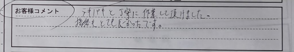 「テキパキと丁寧に作業していただけました。接客も非常に良かったです。」