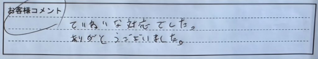 今回、お客様からクリーンワークスの仕事ぶりについて、